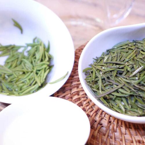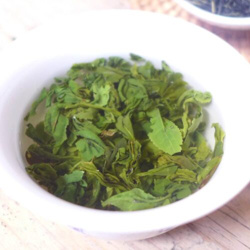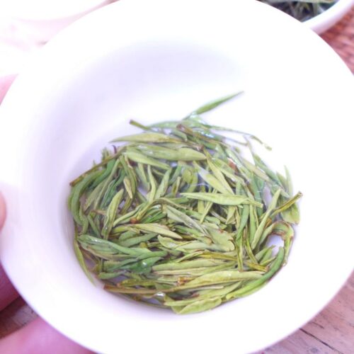 ‘Maofeng’ betekent ‘two leaves and a bud’ oftewel thee gemaakt van 2 blaadjes en een knopje. Deze Maofeng komt uit Hunan.
