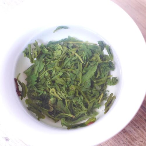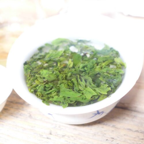 Van het voorjaar 2025. Deze thee had ik tot 2020 van mijn oude leverancier waar ik daarna niet meer kon bestellen. Ik weet er niet heel veel vanaf, alleen dat het een lokale thee is uit Fujian. Hierdoor heeft het geen naam waar je voor betaalt. Gaoshan betekent ‘hoge berg’. Het is bovenal een hele lekkere groene thee met een heel eigen geur en smaak. Het was vroeger één van de populairste groene theeën.