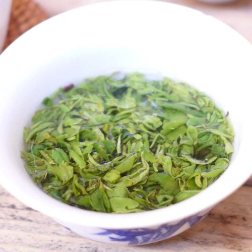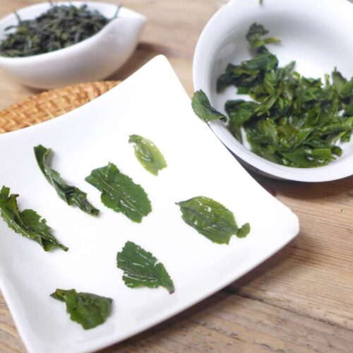 Een Liu An Gua Pian, een unieke thee die al zo’n 1200 jaar bestaat. De thee wordt gemaakt van het 2e blaadje van een nieuwe uitloper waardoor het blad ook wel de vorm heeft van een zaadje van een meloen. Vandaar de alternatieve naam ‘Melon Seed’. Het maken van deze thee is erg arbeidsintensief en door het gebruik van een iets groter blaadje is de smaak wat steviger dan andere groene theeën.